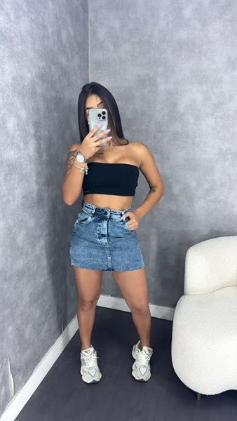 Jeans com lycra, que valoriza as curvas e garante liberdade de movimento.