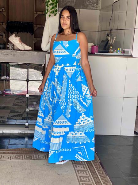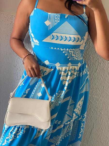 Com uma estampa charmosa e delicada, este vestido azul é a escolha ideal para quem busca praticidade sem abrir mão da elegância. Possui alças reguláveis para melhor ajuste e elástico nas costas, garantindo mais conforto e vistibilidade para manequins de até tamanho 44.