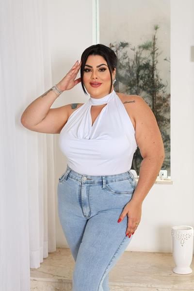 Frente única + decote choker trazem um visual mais ousado e “atraente”. Se for para usar de dia, combinar com peças de cintura alta (short, saia ou calça) pode equilibrar bem.